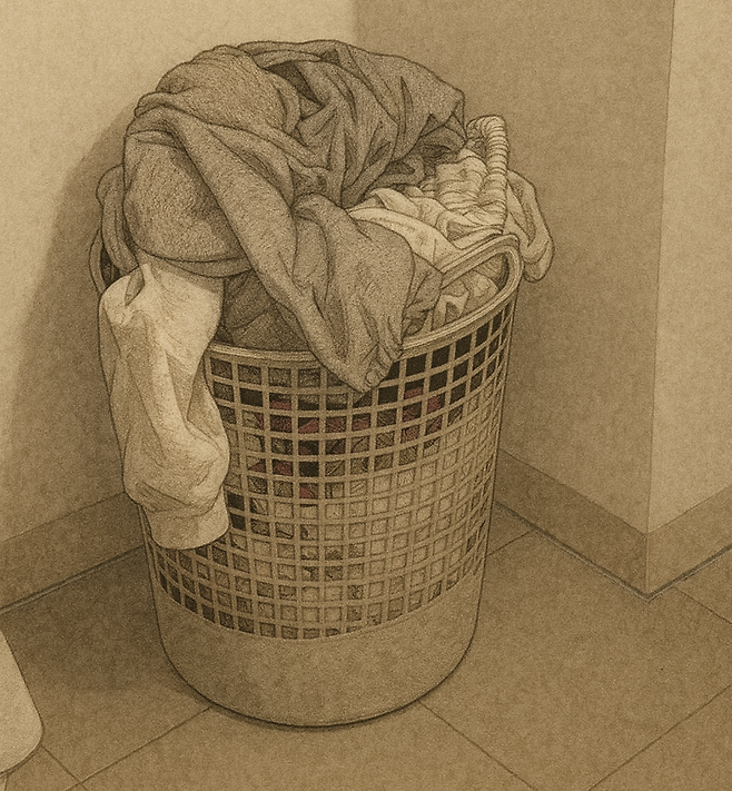 젖은 수건을 마른 빨래와 함께 세탁 바구니에 넣으면 며칠 내에 곰팡이 냄새가 나기 시작한다. 습기가 다른 옷감으로 전달되어 전체 빨래에서 불쾌한 냄새가 나고, 심한 경우 곰팡이가 생겨 옷을 버려야 하는 상황까지 발생한다. 젖은 수건은 따로 걸어 말리거나 즉시 세탁해야 하는데, 이런 기본적인 상식을 모른다는 것은 빨래의 전 과정을 경험해보지 않았다는 명백한 신호다. 세탁물 분류와 관리의 기초를 모르는 것은 집안일을 타인에게 의존해왔음을 고스란히 보여준다.