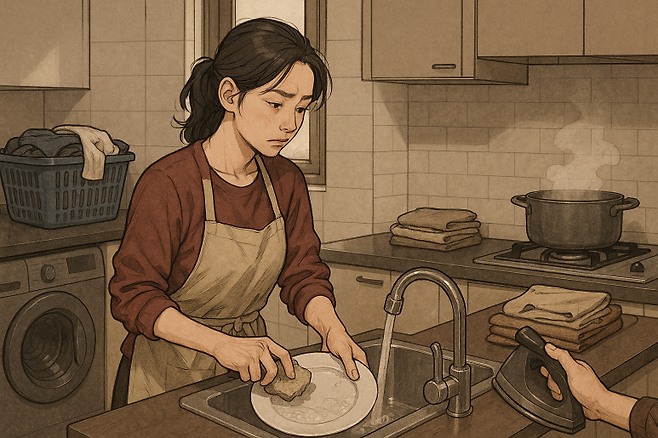 설거지를 시작하려 싱크대에 다가섰을 때 마주하는 광경이 있다. 밥알이 붙어있는 그릇, 고춧가루가 잔뜩 묻은 접시, 기름이 둥둥 떠다니는 국그릇들이 무작정 쌓여있다. 더 당황스러운 것은 이런 그릇들이 서로 포개져 있을 때다. 위 그릇의 바닥에 묻은 음식물이 아래 그릇 안쪽에 고스란히 옮겨붙어, 설거지 전에 먼저 그릇을 분리하고 음식물을 제거하는 추가 작업이 필요해진다. 식사 후 그릇을 싱크대에 넣기 전 휴지로 한 번 닦아내거나 물에 살짝 헹구는 작은 배려가 없다는 것은, 뒷정리가 자신의 몫이 아니라고 여기는 사고방식을 보여준다.