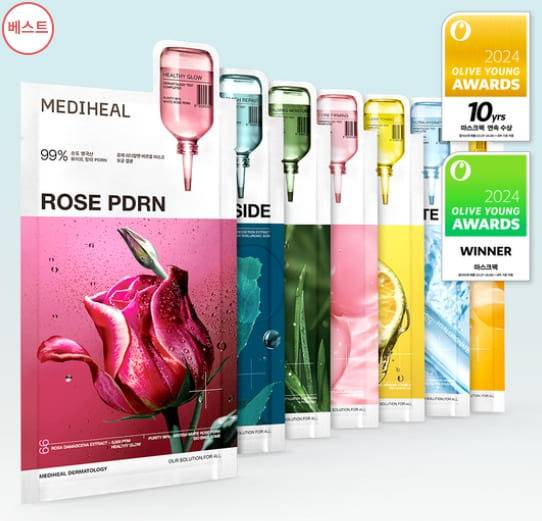 ‘국민 마스크팩’이라 불리는 메디힐의 에센셜 마스크팩도 포함됐습니다. 진정, 쿨링, 미백, 탄력 등 다양한 고민에 따라 고를 수 있는 라인업이 장점이며, 무난하면서도 효과적인 제품으로 전 세계적으로 인정받고 있습니다.