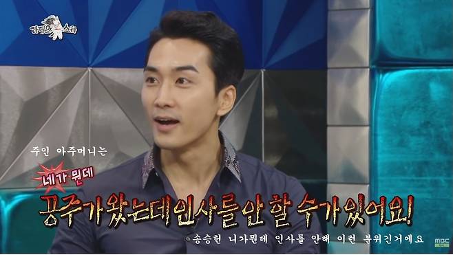 송승헌은 “공주님께 인사하려는데 사장님이 ‘무릎 꿇어야죠’ 하시더라”며 당황스러웠던 당시를 회상했다.