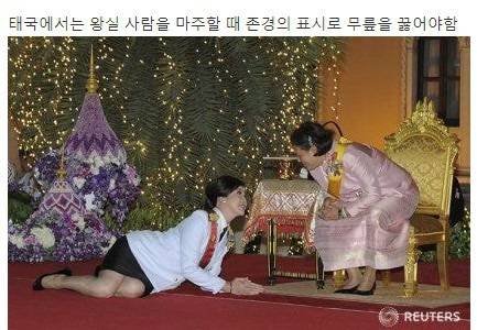 태국에서는 왕실 사람을 마주할 때 존경의 표시로 무릎을 꿇어야하는 특이한 문화가 존재한다.