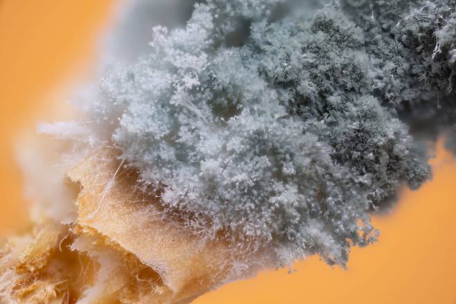 사무실 튤립 구근에 푸른곰팡이가 생겨서 버리려다가, 마침 옆에 현미경 렌즈(Mitutoyo M Plan APO 5x)가 있어서 후다닥 200장만 찍고 182장 골라서 합쳤는데 무진동 테이블도 아니고 미니 삼각대만 있어서 좀 흔들렸습니다. 아무튼 곰팡이 하나하나가 꽃처럼 보이는 것도 접사의 재미라고 할 수 있지요.