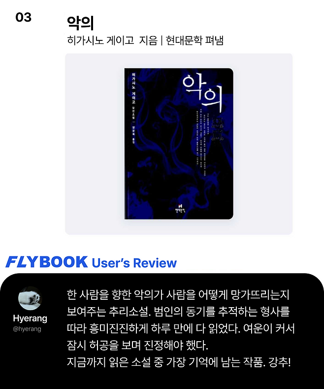 다들 흥미진진하게 읽을 수 있으니 국내 스릴러/추리 소설 읽고 싶으신 분들께 추천드립니다.