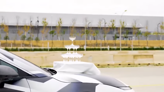 니오가 최근 공개한 영상에는 ET9 차량이 후드에 샴페인 잔을 피라미드 형태로 쌓은 채 무너트리지 않고 주행하는 모습이 담겨 있다. 차량은 균일하지 않은 과속방지턱도 부드럽게 넘어가는 인상적인 퍼포먼스를 자랑한다.