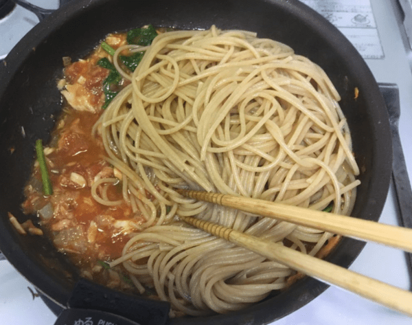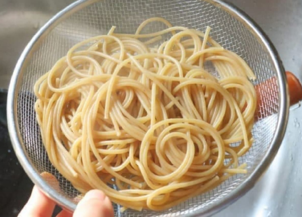 먼저 통밀 파스타를 끓는 물에 삶아준다. 이때 너무 오래 삶지 말고 약간 식감이 남도록 조리하는 것이 중요하다. 삶은 후 물기를 빼고, 올리브오일을 먼저 넣어 면을 코팅해준다.
