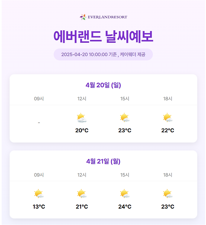 ☑️ 에버랜드 홈페이지 또는 앱에서 날씨 예보 확인하기