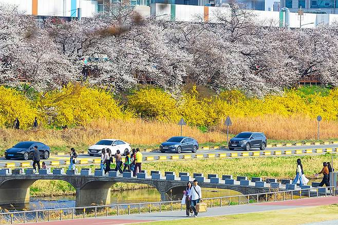 올해 역시 이 아름다운 풍경을 보기 위해 무려 43만 명의 시민과 관광객이 무심천을 찾았다. 강물 위로 흩날리는 꽃잎과 분홍빛 터널 같은 벚꽃길은 ‘사진만으로는 담을 수 없는 감성’을 선사한다.