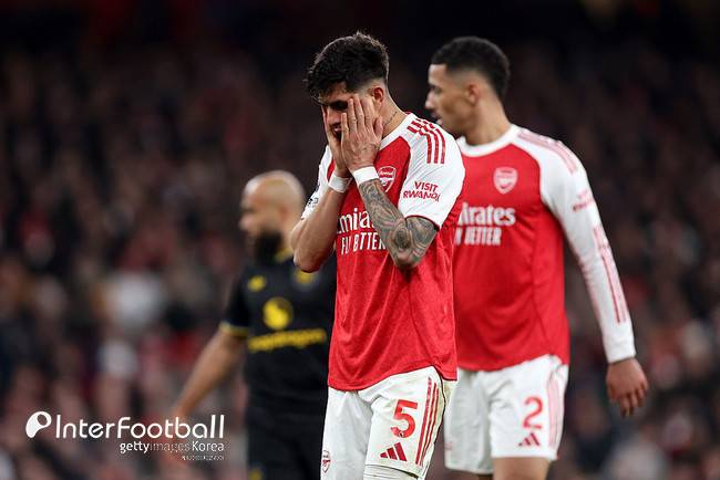 아스널이 교체 카드를 꺼냈다. 후반 12분 인카피에, 제수스, 수비멘디, 외데고르를 빼고 화이트, 요케레스, 메리노, 에제를 투입했다. 아스널이 분위기를 끌어 올렸다. 후반 20분 사카의 패스를 받은 라이스가 중거리 슈팅을 때렸는데 크게 빗나갔다.