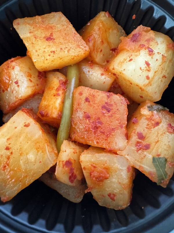 국밥엔 깍두기나 부추, 청경채 같은 부드러운 채소가 더 좋습니다