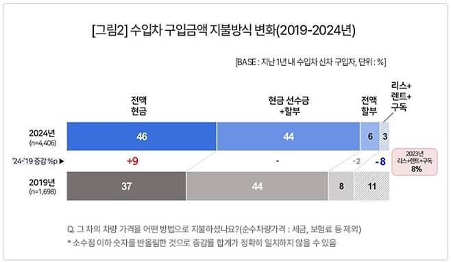 □ 자동차 조사 전문기관 컨슈머인사이트가 2001년부터 수행하는 ‘연례 자동차 기획조사(매년 7월 10만명 대상)’ 24차 조사에서 1년 이내 신차 구입자의 구입가격, 지불방법 등 소비 트렌드를 분석해 지난 5년간의 추이를 수입차 중심으로 비교했다.