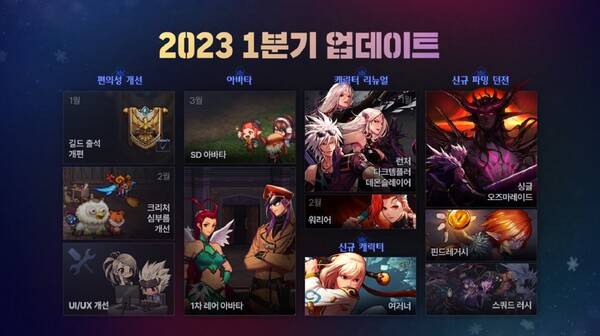 이후 2023년에는 길드 출석, 개편, 크리처 심부름 개선, UI 및 UX 개선, SD 아바타, 1차 레어 아바타, 런처·다크템플러·데몬슬레이어 리뉴얼, 워리어 리뉴얼, 거너(여) 출시, 싱글 오즈마 레이드 추가, 핀드레거시 및 스쿼드 러시 추가를 예고했다.