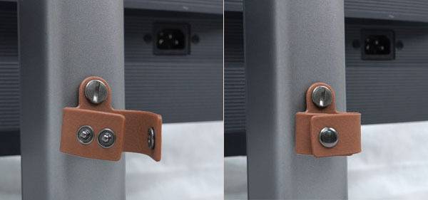 스탠드 봉에는 전원, 신호 입력선 등의 케이블 정리를 위한 인조 가죽 느낌의 타이가 고정되어 있다. 단추 방식으로 손쉽게 열고 닫을 수 있고, 케이블 두께나 갯수 등에 따라 2단계로 조절할 수 있다.