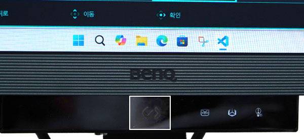 전원 버튼, OSD 호출 및 선택 기능을 제공하는 조이스틱형 버튼, 기능키 버튼은 모니터 뒷면이 아닌 하단에 배치되어 있다. 덕분에 조금 더 편리하게 모니터 환경을 조절할 수 있다. 기능키 버튼은 화면 입력 신호 선택 기능이 할당되어 있지만, OSD 메뉴서 색상 모드와 오디오 음소거, 일정 시간 미사용시 화면 밝기를 낮추는 에코프라이버시 기능으로 바꿀 수 있다.