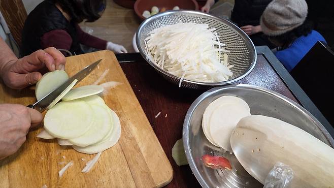 | ▲ 김장하는 날, 이웃이 들러 일손을 보태며 마당이 한층 더 활기를 띤다. |