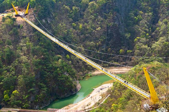 강원도 원주에 있는 '원주 소금산 울렁다리'는 기존 소금산 출렁다리보다 2배 더 긴 404m의 길이로 이루어졌습니다. 2년 간의 공사 끝에 완공돼 원주의 새로운 명소로 입소문 난 곳인데요. 출렁다리를 건널 때 아찔해 마음이 울렁거린다는 의미를 담은 "울렁다리"로 명명됐습니다.