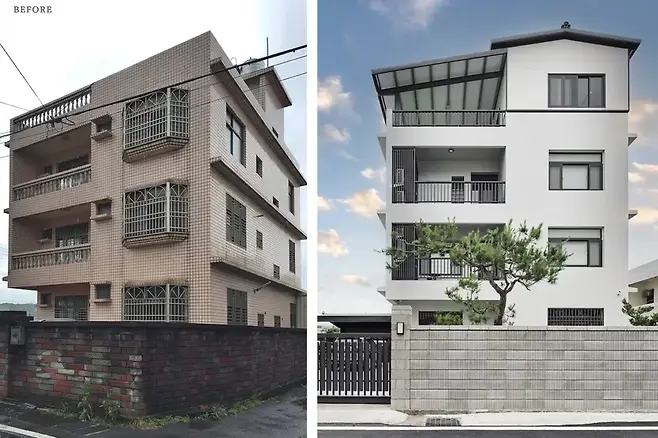 100년 된 벽돌 담장을 철거하고 일본식 중공 벽돌로 외벽을 재구성한 것이 가장 인상적인 외관 변화다. 외장의 불필요한 장식을 덜어내고 방수 페인트로 마감해 비용을 절감하면서도 누수 문제를 해결했다.