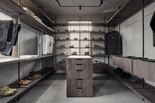 컬렉터인 동생의 라이프스타일에 최적화된 오픈형 드레스룸은 수납의 끝판왕이다. 종류와 수량까지 계산해 설계된 수납 시스템은 효율적이면서도 미적으로 완성도가 높다.