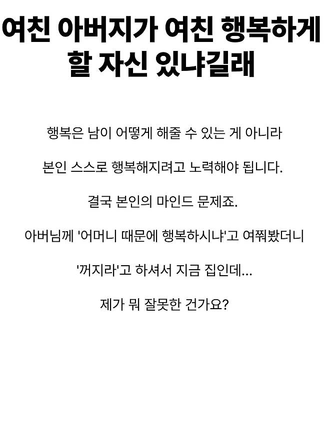 여자친구 행복하게 할 자신있냐는 여친 아버지