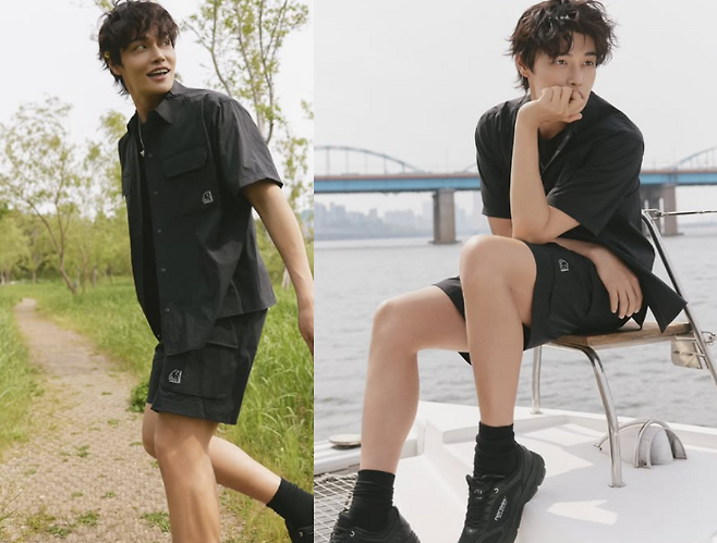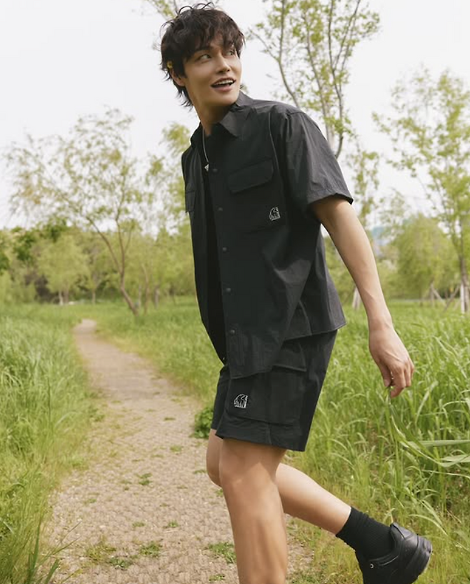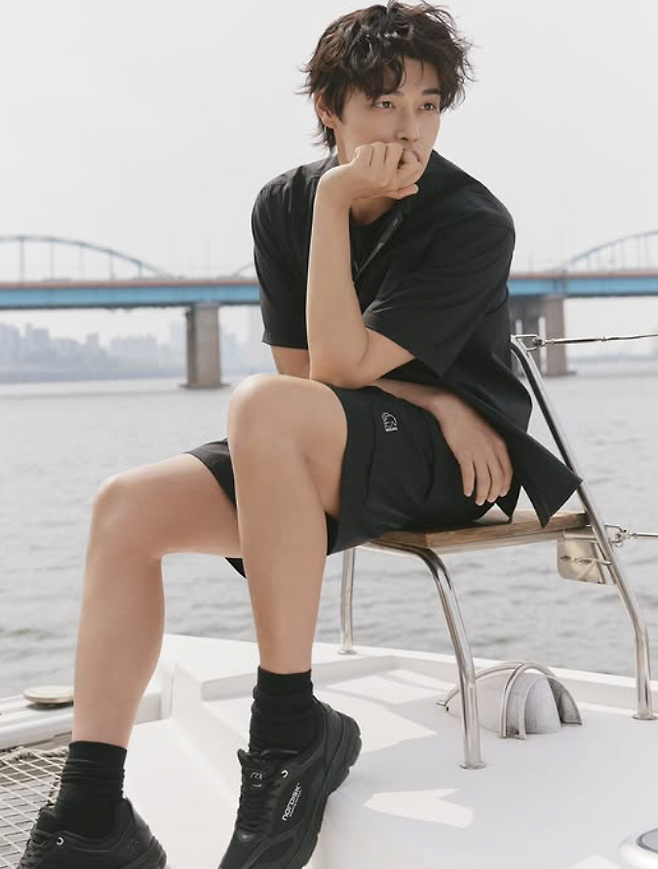 정혁은 캐주얼하면서도 깔끔한 스타일을 선보였습니다. 검정색 반팔티와 검정색 버뮤다 팬츠, 그리고 검정색 운동화를 매치하여 전체적으로 심플하고 세련된 느낌을 주었습니다. 그의 일상적인 스타일은 편안하면서도 품격 있는 모습을 강조해 주었습니다.