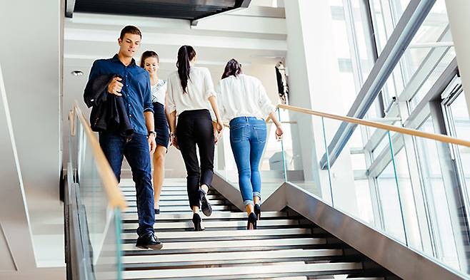계단 오르기의 또 다른 장점은 특별한 장비나 시간을 필요로 하지 않는다는 점입니다. 출근길 엘리베이터 대신 2층만 올라가 보기, 점심시간에 한두 층 걸어내려오기, 회의 후 계단으로 사무실 복귀하기 등 일상 속에서 얼마든지 자연스럽게 실천할 수 있습니다. 체력에 자신이 없다면 하루에 1~2층만 걸어보는 것으로 시작해도 충분합니다.