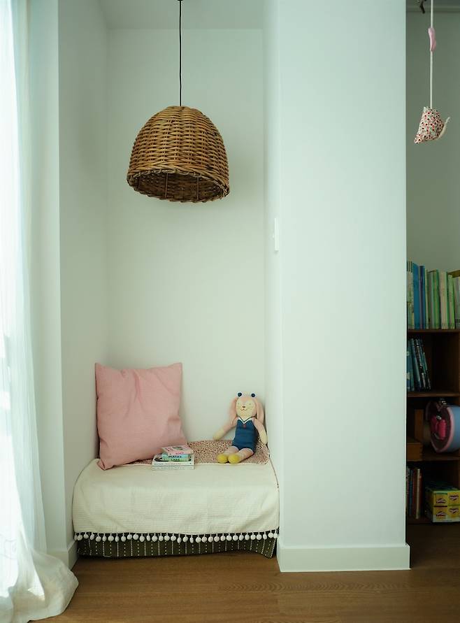 아이 놀이방이 제일 속상해요. 아이를 위해 만들었던 아치 공간은 보수조차 할 수 없어서 철거를 선택했네요. 대신 그 부분은 아이의 키에 맞춰 작은 평상 하나를 들여놓아 아이가 앉아서 책을 읽거나, 놀이를 할 수 있게 만들었어요.
