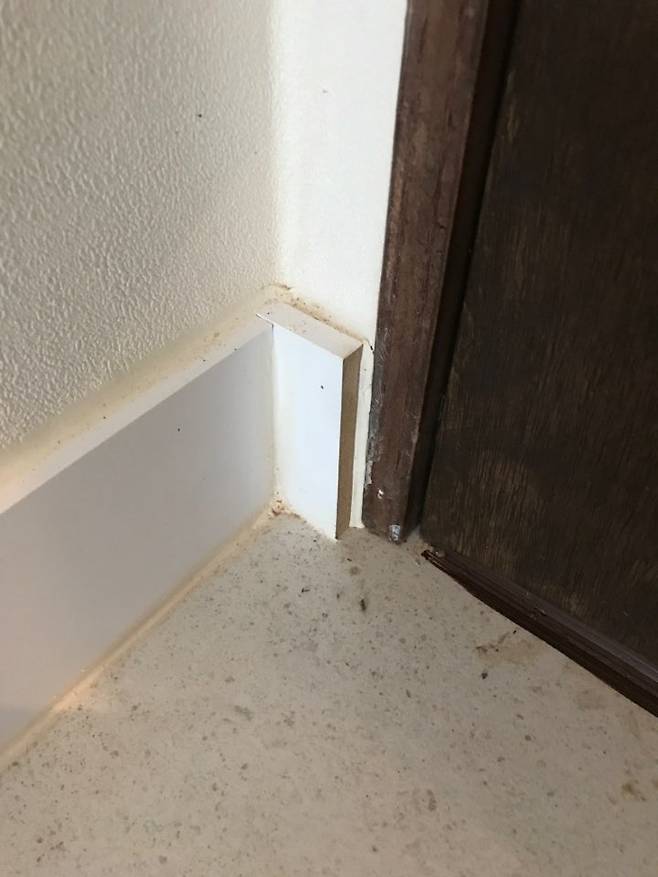 바닥 몰딩 시공도 코너마다 다 잘려 있거나 문 선과 맞지 않게 되어 있었죠.