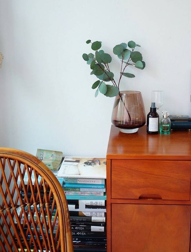기존에 가지고 있던 등가구와 자주 읽는 책들을 함께 둬서 아주 작은 서재로 활용하고 있어요.