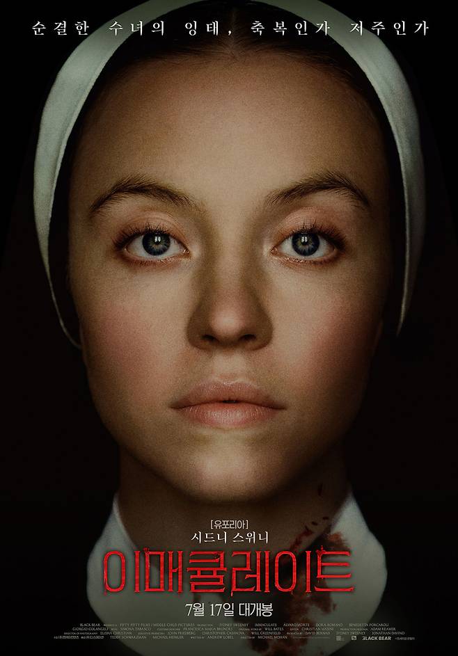 <이매큘레이트>는 할리우드 신예로 떠오르고 있는 ‘시드니 스위니’의 하트캐리 영화다. 시리즈 <유포리아>에서 캐시 역을 맡아 젠데이아 못지않은 존재감을 뽐냈다. 순수함과 관능미를 동시에 품고 있는 얼굴과 작은 체구에서 뿜어져 나오는 카리스마가 독보적이다. 아역시절부터 다져온 탄탄한 연기력과 잘 자란 비주얼로 화제의 중심에 있다.