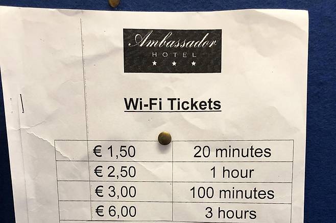 와이파이 요금: 와이파이가 무료 제공되지 않는 경우가 있음.