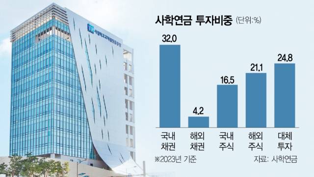 사립학교교직원연금공단(사학연금)이 에쿼티(지분) 투자 비중은 낮추되, 사모대출 투자 비중을 늘리는 방향으로 대체투자 전략을 세웠다.