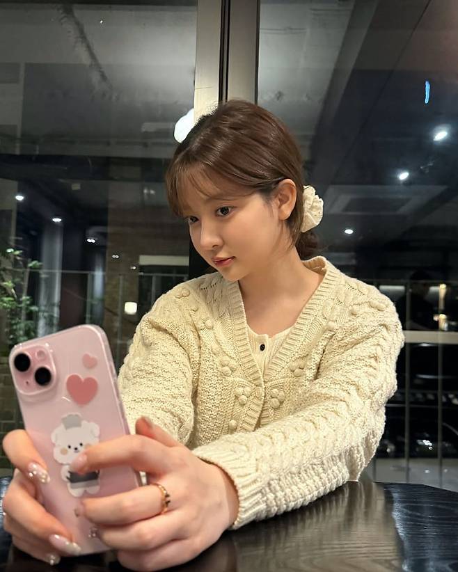 반면 조수민은 보다 내추럴하고 감성적인 무드를 택했다. 저녁 시간대, 레트로한 감성이 물씬 풍기는 골목길에서 포착된 그녀의 스타일링은 마치 한 편의 독립영화 속 한 장면을 연상케 했다. 조수민은 부드러운 아이보리 톤의 니트 가디건을 선택해 화이트룩에 따뜻함을 더했고, 아래로는 도트 패턴이 은은하게 비치는 시스루 레이어드 스커트를 매치해 가녀린 실루엣을 살렸다. 여기에 큰 셔링 디테일이 돋보이는 화이트 숄더백과 청키한 플랫폼 로퍼를 더해 로맨틱하면서도 키치한 매력을 완성했다. 전체적인 실루엣은 풍성하면서도 단정했고, 톤은 따뜻했으며, 소품은 개성 있게 선택돼 감성적인 무드가 배가됐다.