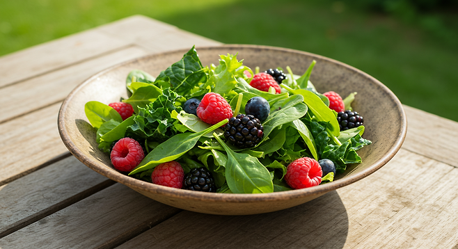 아침에 신선한 채소와 과일로 구성된 식사는 하루를 시작하는 데 필요한 에너지를 공급하고 신체 대사를 촉진하는 데 도움이 됩니다. 문정희가 선택한 샐러드에 포함된 녹색 채소는 식이섬유가 풍부하며, 블루베리와 같은 베리류는 항산화 효능이 뛰어나 건강 유지에 긍정적인 영향을 미칩니다.