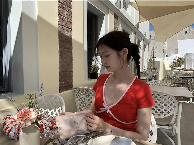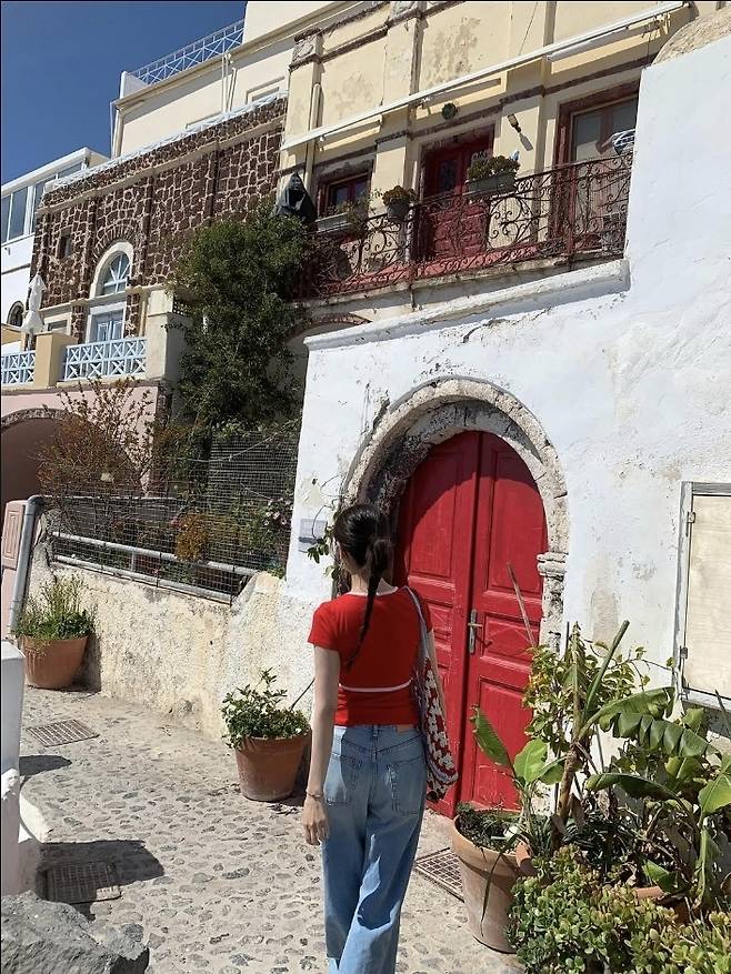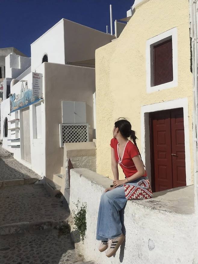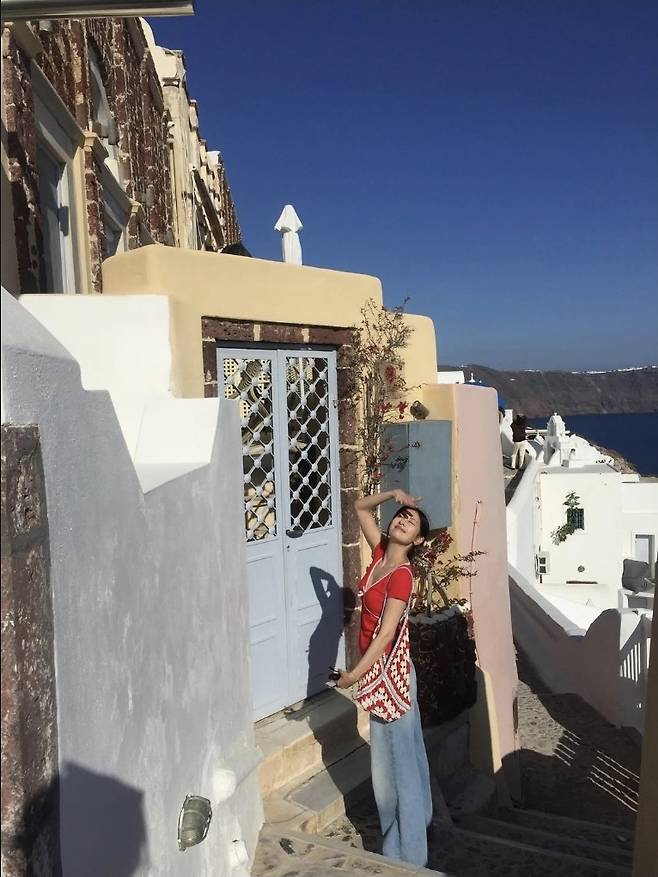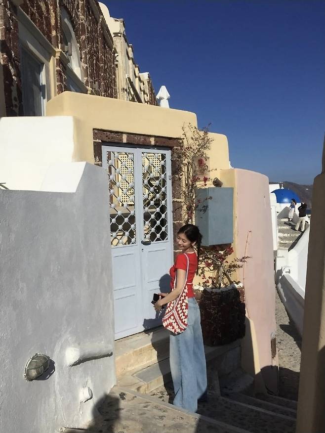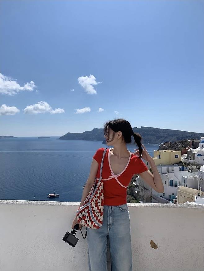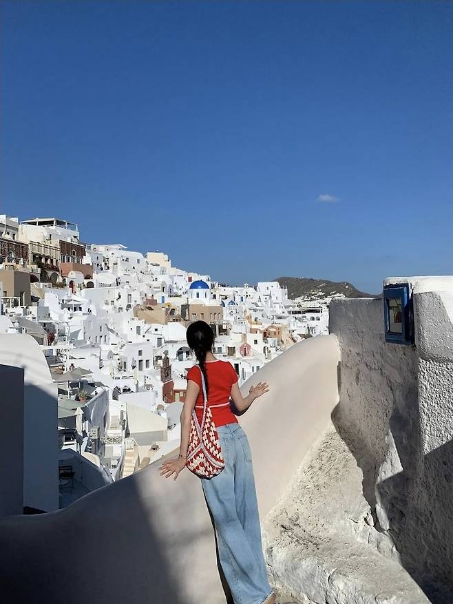 배우 정소민이 산토리니에서 여름 감성을 제대로 살린 여행룩을 선보였습니다.