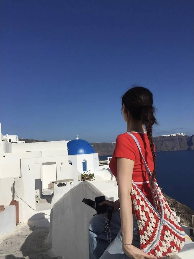 특히 포인트로 선택한 레드&화이트 컬러의 니트 크로셰 숄더백은 사랑스러운 지중해 무드를 더하며 완벽한 여행룩을 뽐냈습니다.