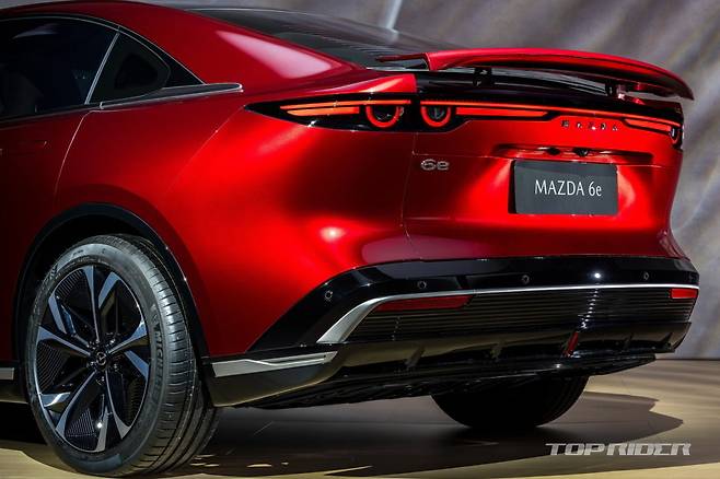 또한 어댑티브 크루즈 컨트롤과 차선 유지 보조 등으로 구성된 최신 운전자 보조 시스템, 원격 제어 시스템 등도 기본이다. 마쯔다 6e에는 트림에 따라 68.8kWh 혹은 80kWh 배터리가 적용됐다. 마쯔다 6e 기본형은 1회 완충시 WLTP 기준 483km를 주행할 수 있다.