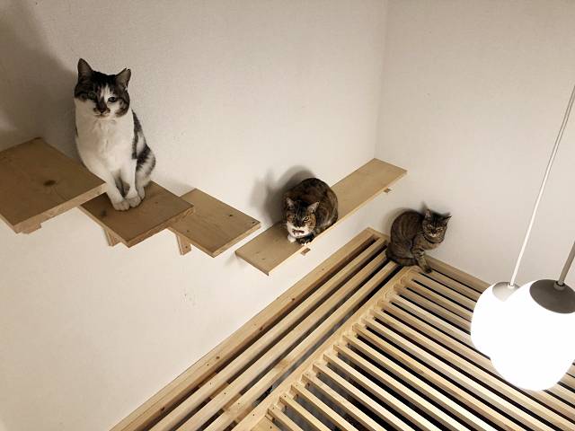 가장 주의해야 할 것은 하중. 캣워크는 고양이 체중을 지탱할 수 있어야 하는 것은 물론 점프했을 때의 충격도 견딜 수 있어야 한다.
