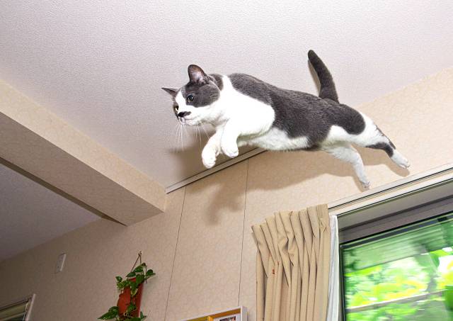 고양이가 오르내리는 동작을 할 때의 충격은 생각보다 강하다. 보통 시중에 나온 캣타워나 캣선반은 최고 20kg까지 견디도록 설계되는데, 안전성을 확인하는 방법의 하나가 집사가 직접 대롱대롱 매달려 보는 것.