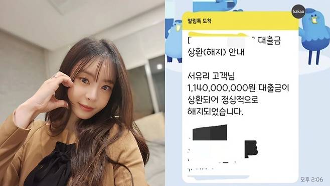 또한 9월에는 서유리가 11억 원이 넘는 대출금을 상환한 캡처를 올려 네티즌들의 응원을 받았다. 그는 "좋은 날이 또 올 거라 믿자"라며 스스로 토닥이는 말을 전했다.