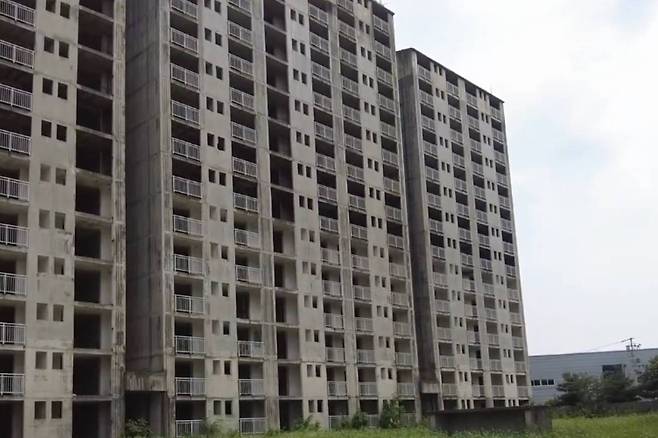 부동산업계에 따르면 해당 아파트는 16층 높이의 5개 동이 공정률 50% 상태에서 멈춰 있다. 도색되지 않은 콘크리트 외벽은 시간이 지나면서 흉물스러운 모습을 드러냈고, 내부는 철근과 거푸집 일부만 남아 위험한 상태로 확인됐다.