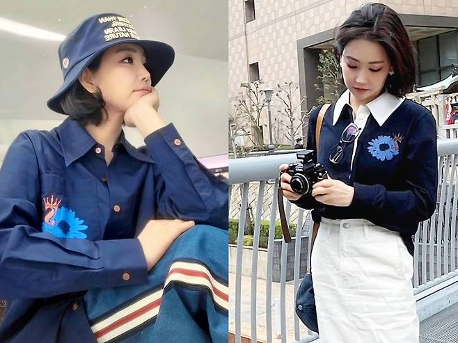 이유리는 네이비 톤 셔츠와 버킷햇, 스트라이프 디테일이 더해진 데님 팬츠 조합에서는 편안하면서도 개성 있는 캐주얼 무드를 드러냈고, 화이트 스커트와 플라워 모티브가 돋보이는 카디건 매치에서는 한층 단정하고 산뜻한 분위기를 살렸습니다.