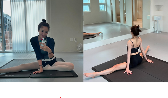 사진 속 그는 매트 위에서 180도 다리를 찢으며, 발레로 다져진 유연함과 탄탄한 바디라인을 과시했다.