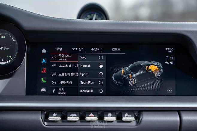 전자장비도 구색별로 빠짐없이 갖췄다. 가령 ‘포르쉐 액티브 서스펜션 매니지먼트(PSAM)’가 각 휠의 댐핑 강도를 제어하고, ‘포르쉐 트랙션 매니지먼트(PTM)’와 ‘포르쉐 스태빌리티 매지니먼트(PSM)’는 접지력을 챙긴다. 코너에선 ‘포르쉐 토크 벡터링 플러스(PTV Plus)’와 ‘리어 액슬 스티어링’이 모난 라인은 뭉개고 흐릿한 궤적은 뾰족이 다듬어준다.