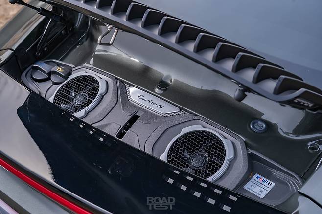 911 터보 S의 엔진엔 피에조 인젝터와 터보차저 두 개를 물렸다. 터빈은 실시간으로 날개 각도를 바꾸고, 압축기와 반대로 회전한다. 터빈과 압축기 휠의 직경도 각각 55, 61㎜로 이전보다 키웠다. 웨이스트게이트 플랩은 스테퍼 모터로 전기 제어하고, 부스트 압력 제어도 더 빠르고 정확해졌다. 압축한 공기는 이전보다 14% 큰 두 개의 인터쿨러로 식힌다.