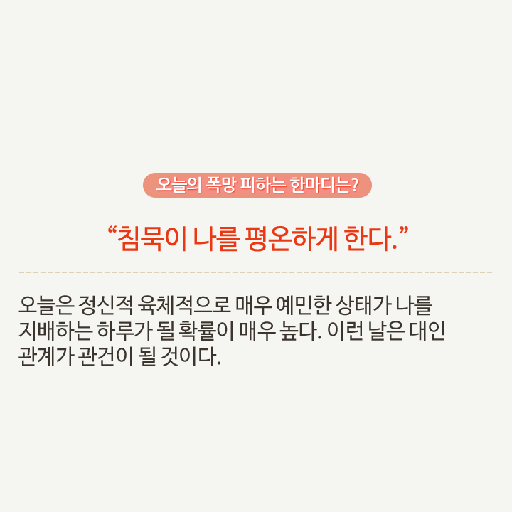 최소한 오늘 폭망은 피하게 해주는 참 고마운 띠별 오늘의 운세! 오늘 최소한 이것만 알면 폭망할 일 없어요.