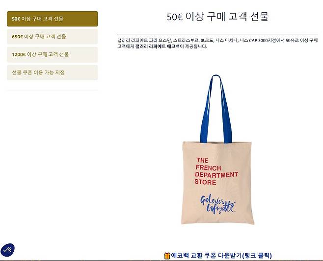 갤러리 라파예트와 프랑스 관광청이 한국인 방문객들을 위해 특별한 선물 쿠폰 이벤트를 준비했다고 하는데요. 파리 오스만점을 포함한 여러 지점에서 쇼핑을 즐기며 금액별로 특별 혜택을 받을 수 있습니다.