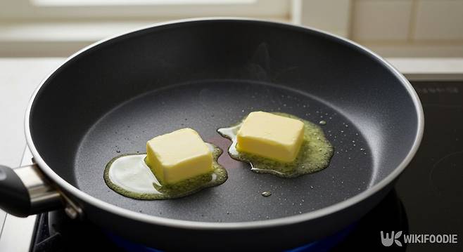 3. 팬에 버터 2조각을 두르고 약불에서 녹인다.