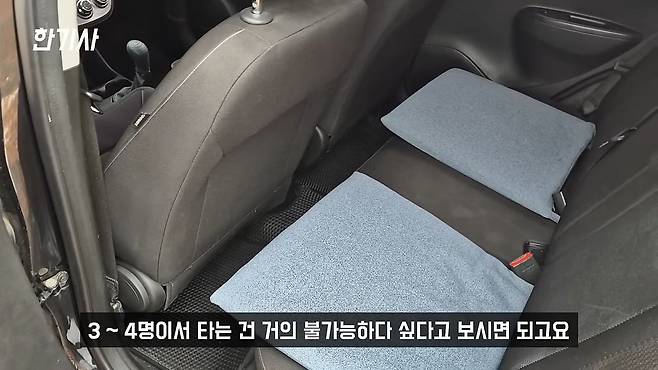 또 다른 단점은 뒷좌석 공간입니다. 뭐 경차로써 어쩔 수 없긴 한데 제 키가 182cm거든요. 그러다 보니까 시트를 굉장히 뒤로 빼놓고 탑니다. 그냥 이 차는 2인용이라고 보시면 됩니다. 3명, 4명이서 타는 건 거의 불가능하다고 보시면 되고요.