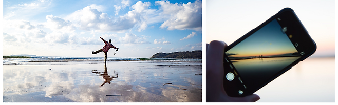 핸드폰으로도 간단히 찍을 수 있는 인생샷! 사진을 찍으실 땐 이렇게 피사체가 되시는 분들은 물이 고인 곳의 건너편에 선 뒤 각도를 잘 조정해서 마치 바다가 쭉 이어져 있는 것과 같은 구도를 잡아서 사진을 찍으시면 된답니다. 교대로 사진을 찍기 어려운 상황이시라면 삼각대와 블루투스 리모컨이 있으면 더 편하게 찍으실 수 있어요.