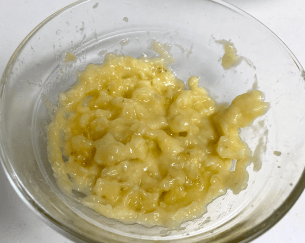 바나나를 으깬 후에는 계란을 넣어 반죽을 완성하는데, 이때 계란을 체에 한번 걸러주는 것이 포인트다. 체에 걸러주면 덩어리가 없어지고 전체적으로 훨씬 고운 반죽이 완성된다.