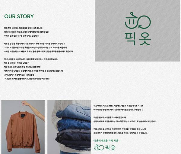 의류 자체를 재활용하는 것도 방법이다. 단추나 지퍼 등의 파츠를 분리하고, 옷을 잘게 파쇄한 다음 옷감을 다른 물품의 재료로 활용하는 것이다. 업사이클링 패션의 재료로 활용하는 것도 좋다. 의류 수거 기반 업사이클링 서비스 또한 고려할 만하다. 1kg당 400원의 시세를 적용해 픽포인트를 지급하는 ‘픽옷’이 대표적으로, 플랫폼을 통해 의류 수거를 신청하면 픽옷이 직접 방문해 비대면 수거를 진행한다.